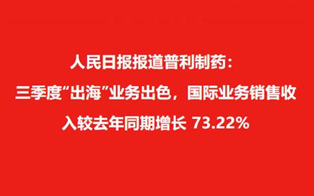 人民日报报道普利制药: “出海”业务出色,三季度国际业务销售收入较去年同期增长 73.22%