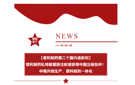 【普利制药第二个国内造影剂】普利制药钆特酸葡胺注射液获得中国注册批件!中美共线生产,原料制剂一体化