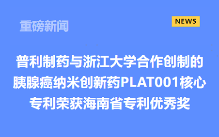普利制药与浙江大学合作创制的胰腺癌纳米创新药PLAT001核心专利荣获海南省专利优秀奖