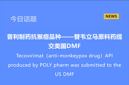 普利制药抗猴痘品种——替韦立马原料药提交美国DMF