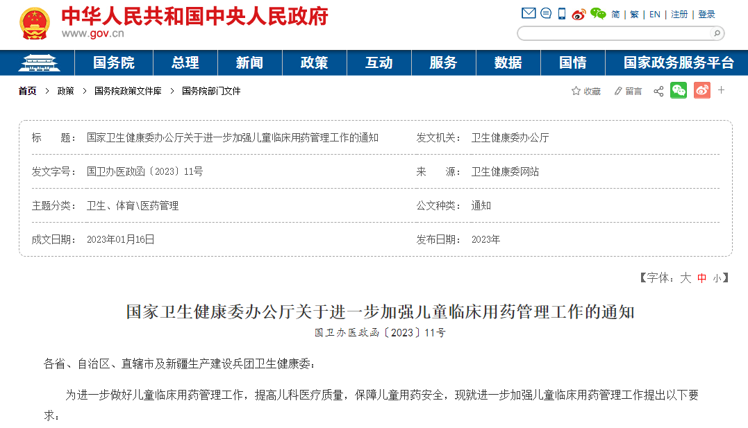 2023年1月16日,卫生健康委办公厅发布的《国家卫生健康委办公厅关于进一步加强儿童临床用药管理工作的通知》一文中就提到“医疗机构要按照处方剂量精准调配儿童用药,特别是针对低龄儿童的药品调剂,鼓励开发可灵活调整剂量的新技术、新方法,加强个性化给药的标准化管理和质量控制,减少‘剂量靠猜、分药靠掰’导致的分不准、不安全等问题”,强调了儿童的精准给药。