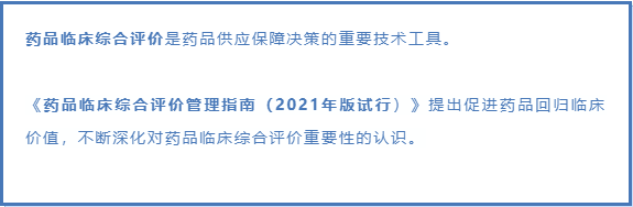 药品临床综合评价以人民健康为中心,以药品临床价值为导向,利用真实世界数据和药品供应保障各环节信息开展药品实际应用综合分析,探索建立并逐步完善基于政策协同、信息共享,满足多主体参与、多维度分析需求的国家药品临床综合评价机制。