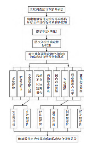 结果 本研究成功构建地氯雷他定治疗荨麻疹的临床综合评价指标体系,包括6个一级指标、13个二级指标、30个三级指标。地氯雷他定的临床综合评价总分为93.63分,氯雷他定为70.91分。