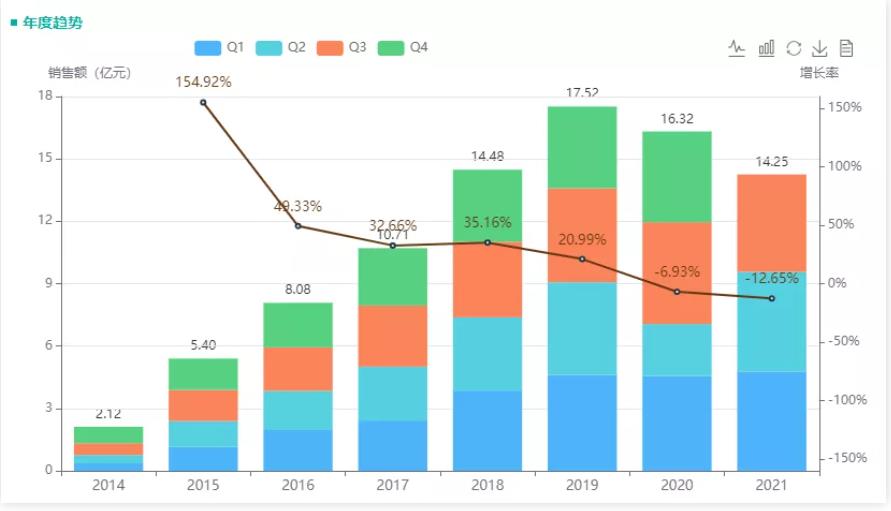 利奈唑胺原研来自辉瑞,是一种恶唑烷酮类合成抗生素,主要用于治疗革兰氏阳性菌引起的感染。该药自 2000 年经 FDA 批准上市至今,仍是抗耐甲氧西林金黄色葡萄球菌(MRSA)感染领域的重要品种。据药融云统计,利奈唑胺近年在院内销售额稳定增长,2019年达到峰值销售额超17亿,2020年略有下降,根据2021年前三季度销售情况,2021年有望达到新纪录。总体来看,利奈唑胺葡萄糖注射液占据主要市场。从企业来看,原研辉瑞占据最大市场份额(65%),豪森、正大天晴次之。
